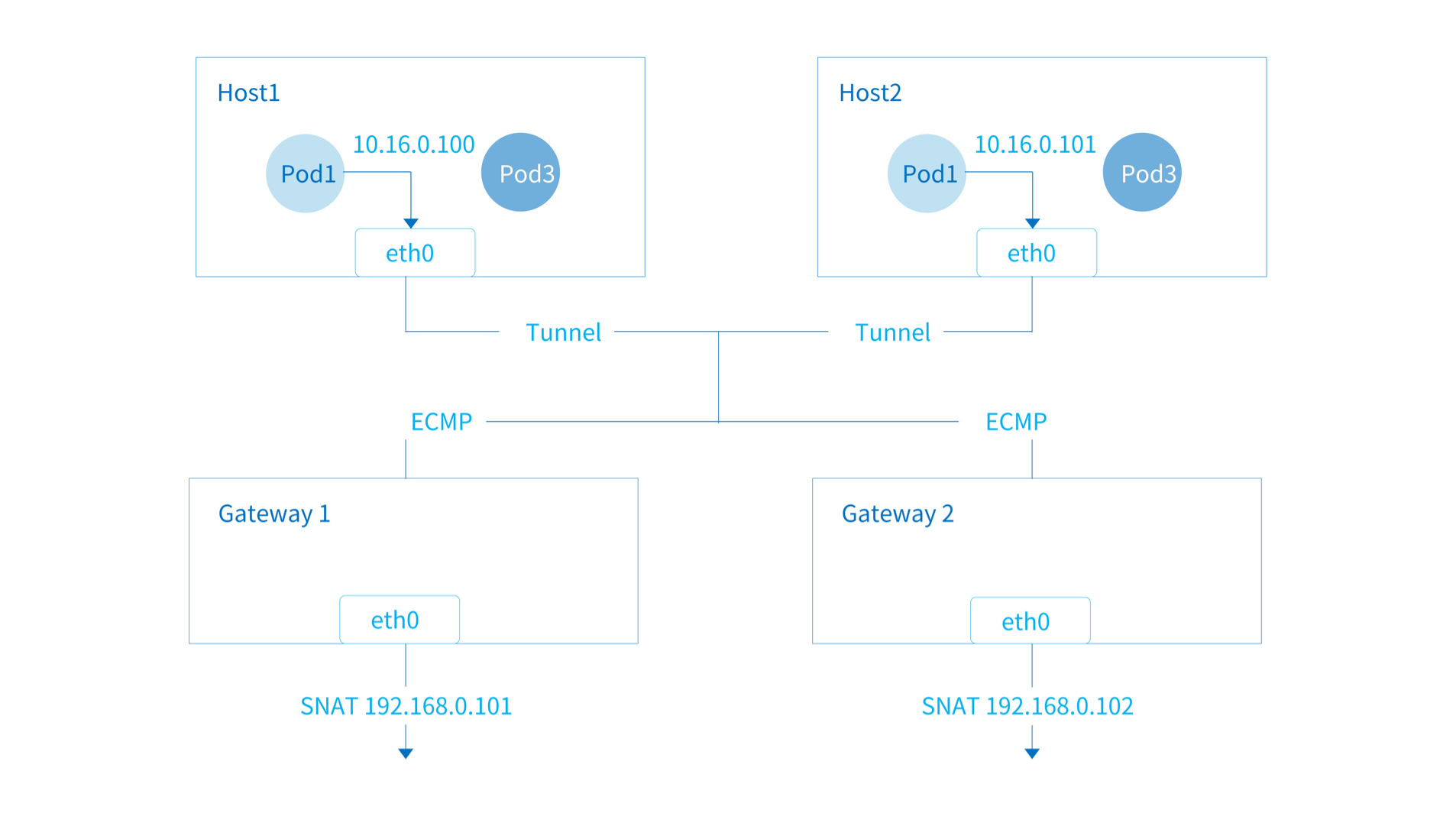 两种类型网关均支持 natOutgoing 设置,用户可以选择 Pod 访问外网时是否需要进行 snat。